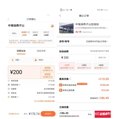 可以看到,現在同一加油站,滴滴和團油的價格差距就比較大,差距高達16元,這與團油廣告內容“用團油省大錢”明顯不符;但深入研究其背後的邏輯可以明顯看出,團油有返現手段,加油後返還的加油金滿300可提現,明顯是要刺激用户長期駐守與高頻使用,但如果平台規則邊話或幾次加油才有目前返還的現金池,那用户是否叛變將變得不可控。