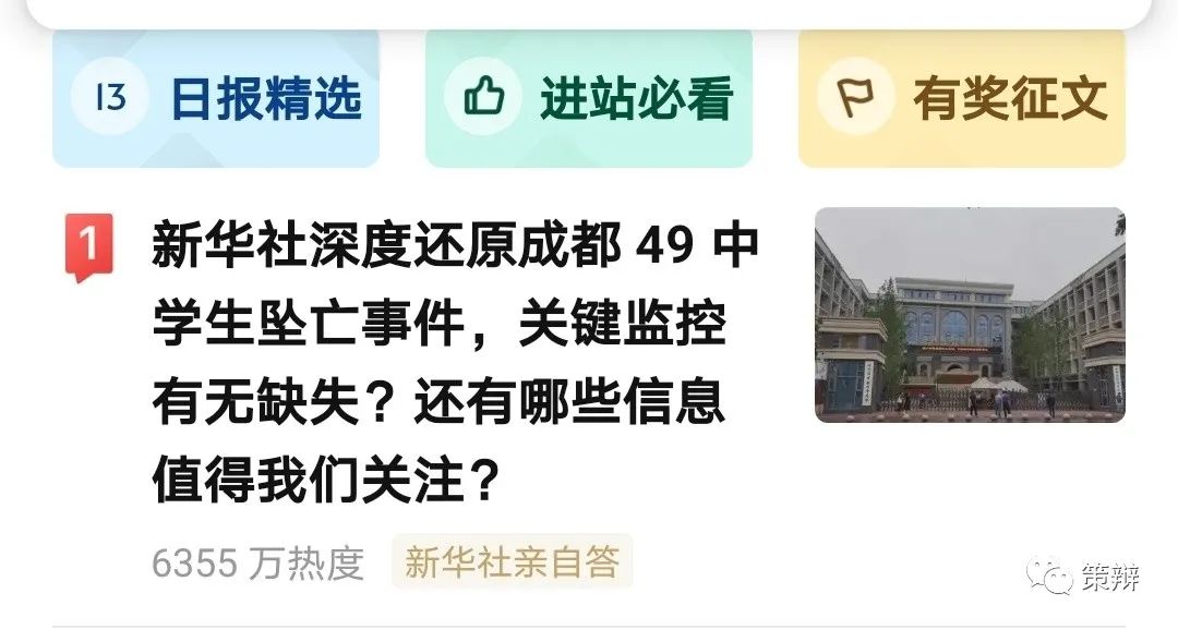 49中事件剛爆發時,平常比較能夠理性獨立思考的我,看那些報道和條理清晰的質疑,感覺頭腦充血,異常憤怒。一個花季雨季的生命,在盛開前於一個特殊的日子逝去,想一下都讓人心顫?更不用説他的親人。但某乎異乎尋常的反覆將相關話題置頂,某博山呼海嘯的輿論熱潮,讓我感覺到了其中某種異乎尋常力量的推動。
