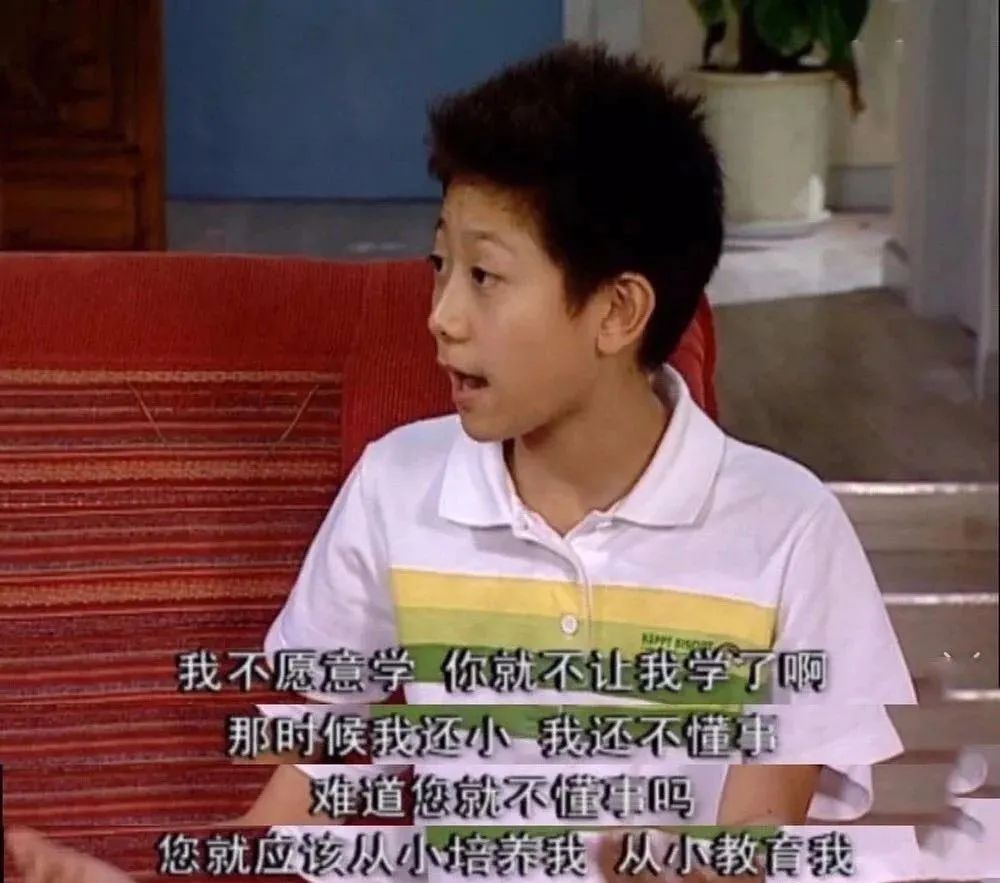 在《家有兒女》中劉星就説過這樣一段話:“我不願意學你就不讓我學了啊,那時候我還小,我不懂事,難道您也不懂事嗎?您就應該從小培養我,教育我,逼着我學。”