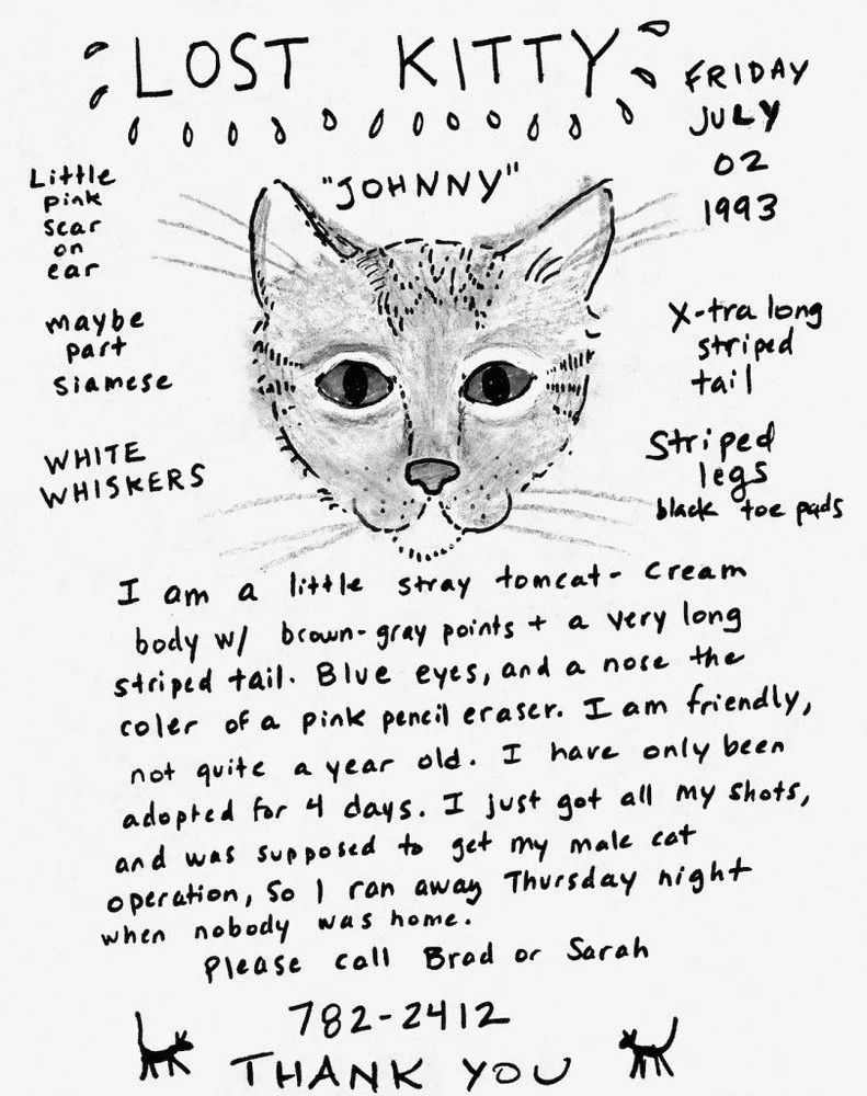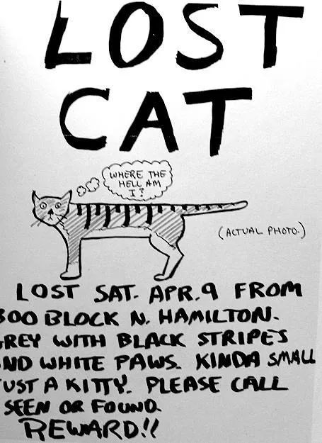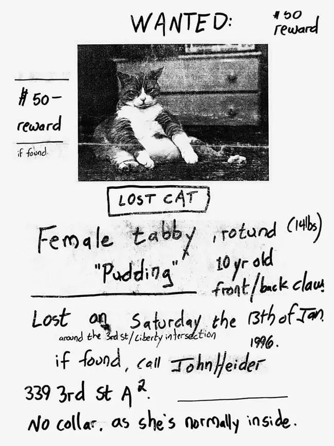 那時還是90年代末,互聯網尚未發展起來,有一次伊恩室友的貓失蹤了,他到處張貼貓的海報,最終得以找到。