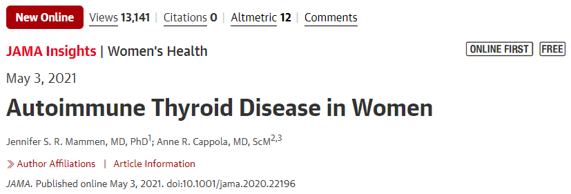 近日,《美國醫學會雜誌》(JAMA)發表評述文章,來自約翰霍普金斯醫院(Johns Hopkins Hospital)和賓夕法尼亞大學(University of Pennsylvania)的兩位內分泌專家,探討了女性年齡、生殖和妊娠對於甲狀腺功能的影響。
