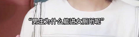 在孩子三歲左右,她帶他進入女廁,女廁裏也有個看着比兒子大一兩歲的女孩,看見有男童進來,小女孩“很大聲地”提出疑問:為什麼那邊有個男生,男生為什麼能進女廁所?