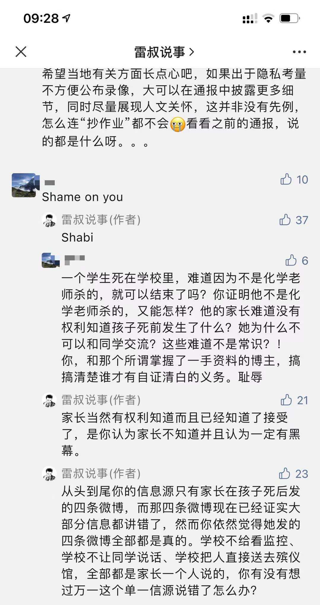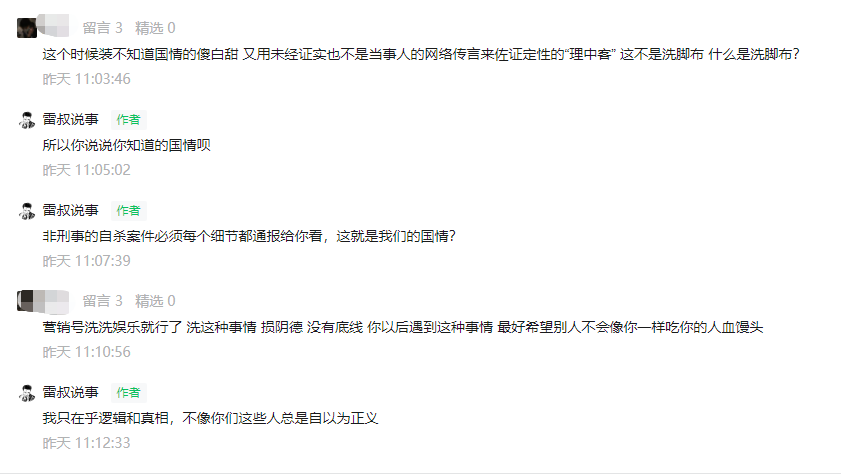 上面這一切公佈以後,有網友還是不依不饒,認為一定要公佈孩子自殺的原因和更多細節,否則就罵人: