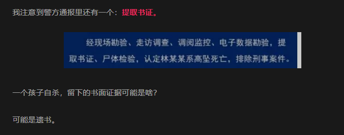 還有一個,我之前也寫過,警方通報中提到了“提取書證”,這個書證確實是孩子留下來的紙條。