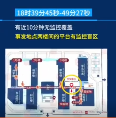 不過倒也不是監控壞了,或者校方把這段監控給刪了,而是事發區域屬於沒有人會上去的無人區域,孩子是攀爬上去的,所以那段根本就沒裝監控,也就沒有直接拍到少年墜樓的畫面。