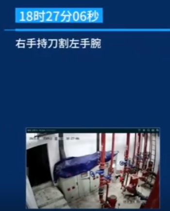 第二是監控拍到了孩子在跳樓前割腕: