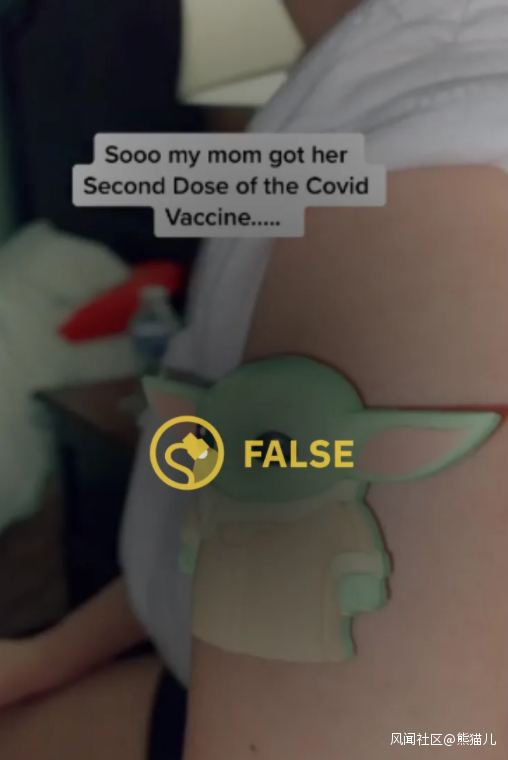 其中的一個視頻顯示一名聲稱接種了疫苗的人,在胳膊接種的地方放置了一塊“尤達寶寶”的磁鐵,聲稱自己接種的疫苗中含有金屬物質。