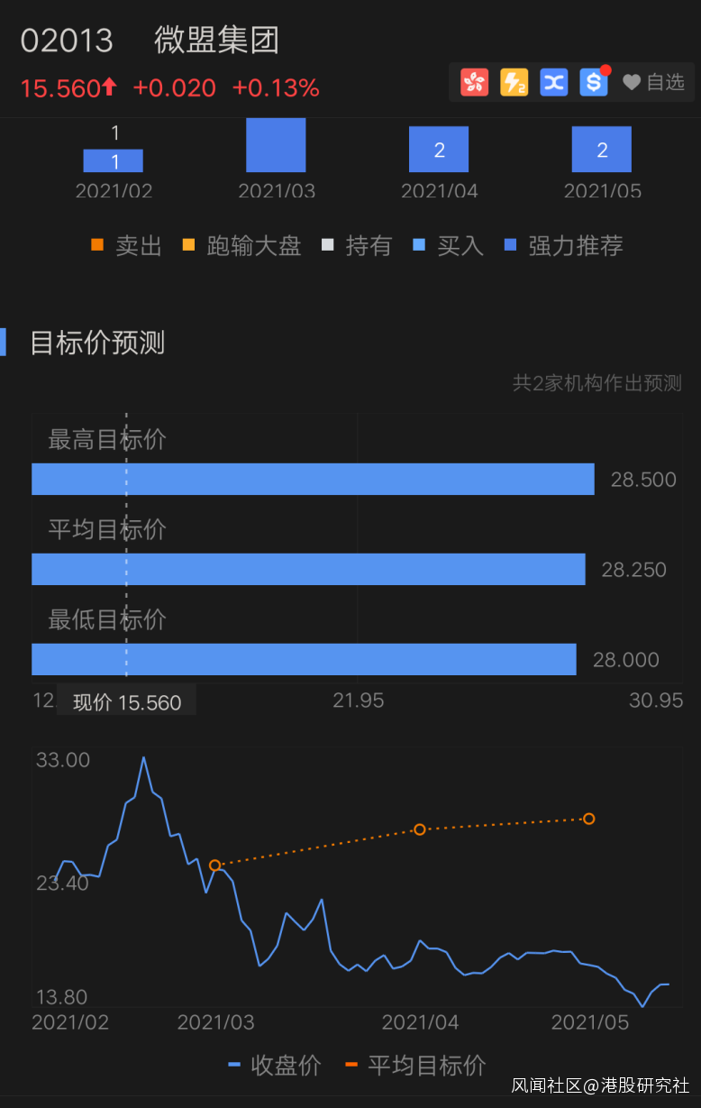 值得一提的是,近日,微盟也獲得了大摩、中信建投等投行的唱多,紛紛給予買入評價並提高目標價;在富途上,機構對微盟的最高平均目標價為28.25港元,較目前15.56港元的股價依然有45%的上升空間。