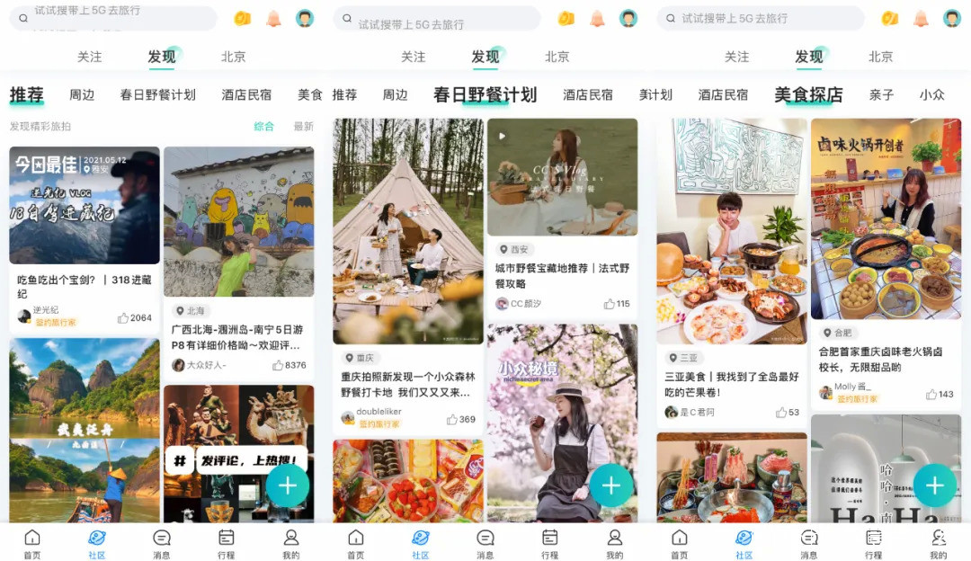 此前旅遊產業鏈的官方賬號都集中在微信微博,視頻vlog都集中在抖音、快手、B站,攻略分享都集中在豆瓣、小紅書。旅行行業是天然的內容富集地,但離旅遊最近的攜程此前一直靠過時且古板的社區來構建其內容生態。