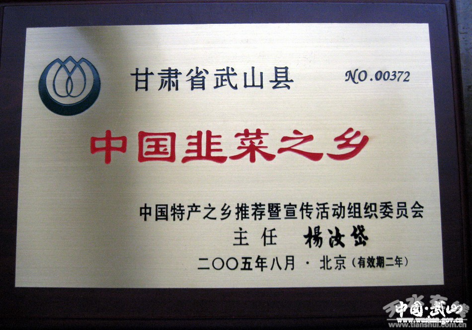 2005年,武山線被中國特產之鄉委員會正式授牌“中國韭菜之鄉。”