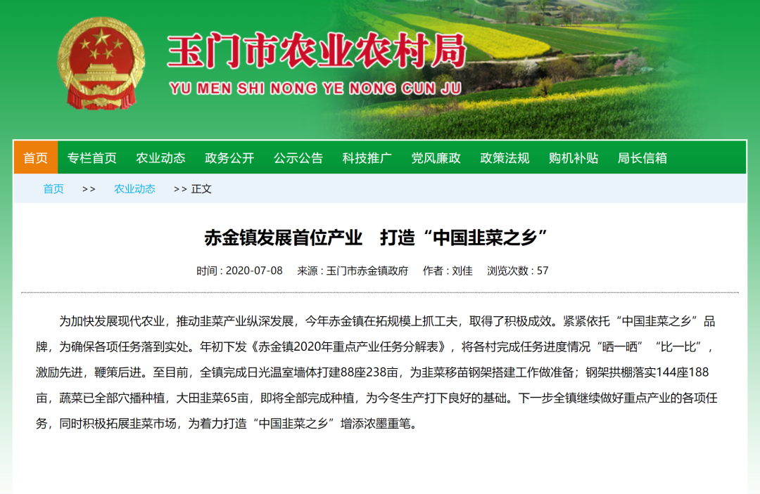 在玉門市農業局官方上,“中國韭菜之鄉”已位列赤金鎮的發展目標首位。