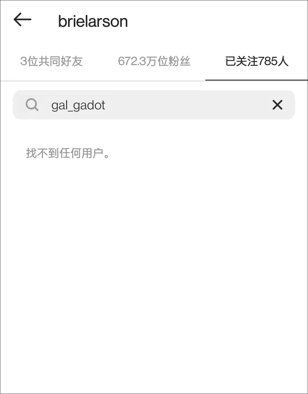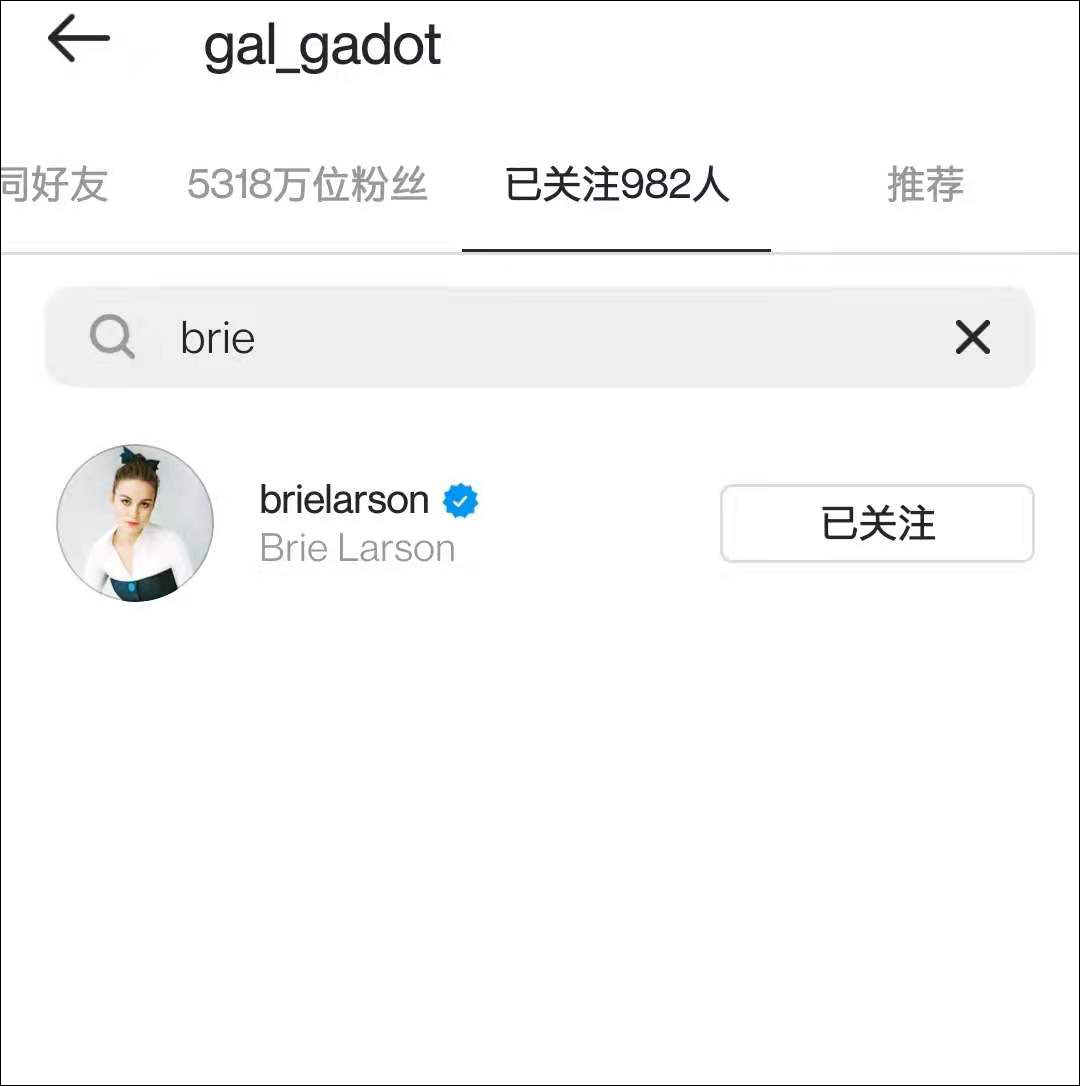 無論是推特賬號還是Instagram賬號,“驚奇隊長”的關注列表裏,都沒有“神奇女俠”的名字。