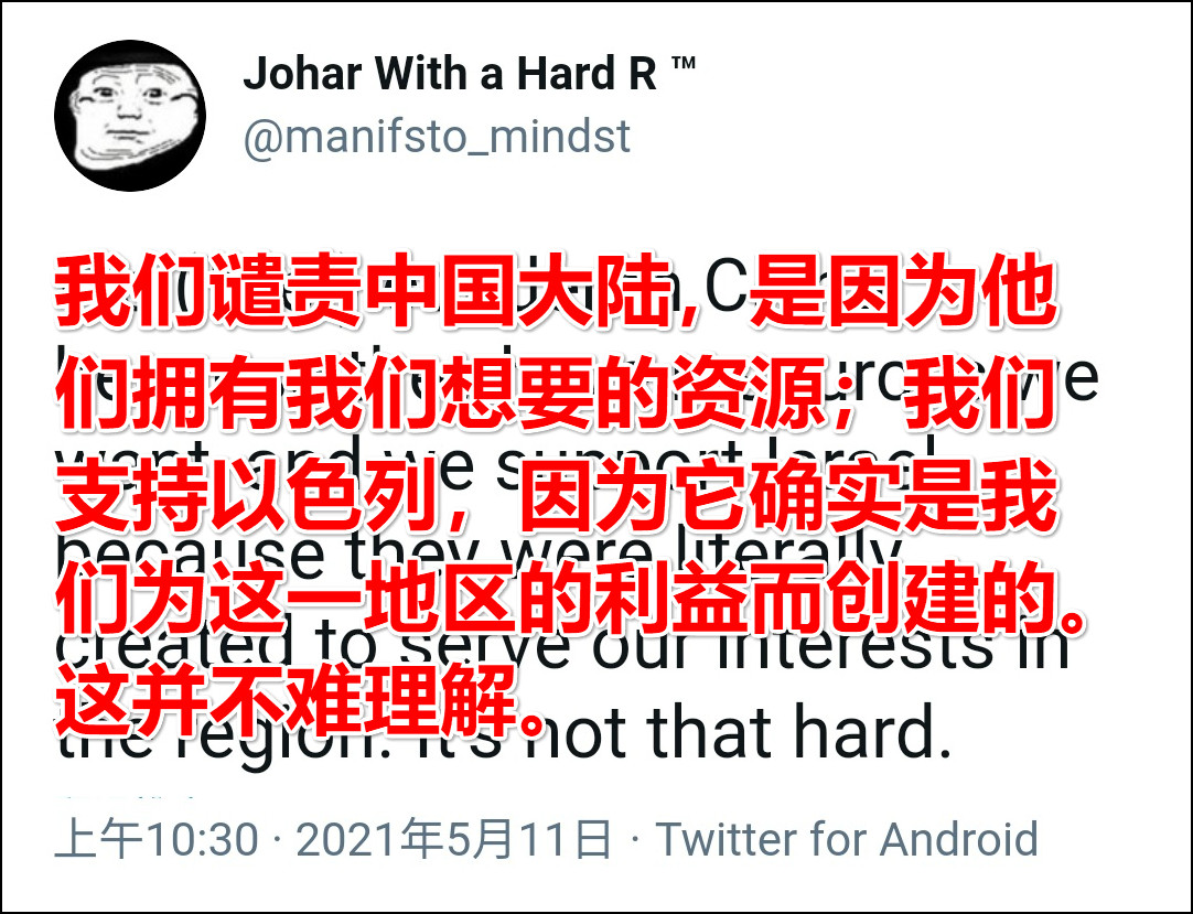 【文/觀察者網 陳聰】“現在是2021年,如果你不得不從兩個地區中選擇出生地,你是更願意成為巴勒斯坦人還是維吾爾族人?”