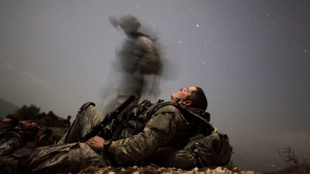 ▲阿富汗戰場上,疲憊不堪的美軍士兵在夜間行動中打盹。