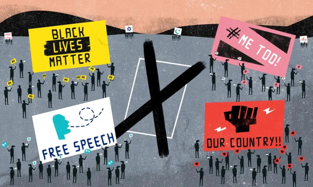 ▲“黑命貴”“Me too”“言論自由”“美國優先”……身份政治將美國社會割裂成一個又一個自説自話的派系,毫無共識可言。
