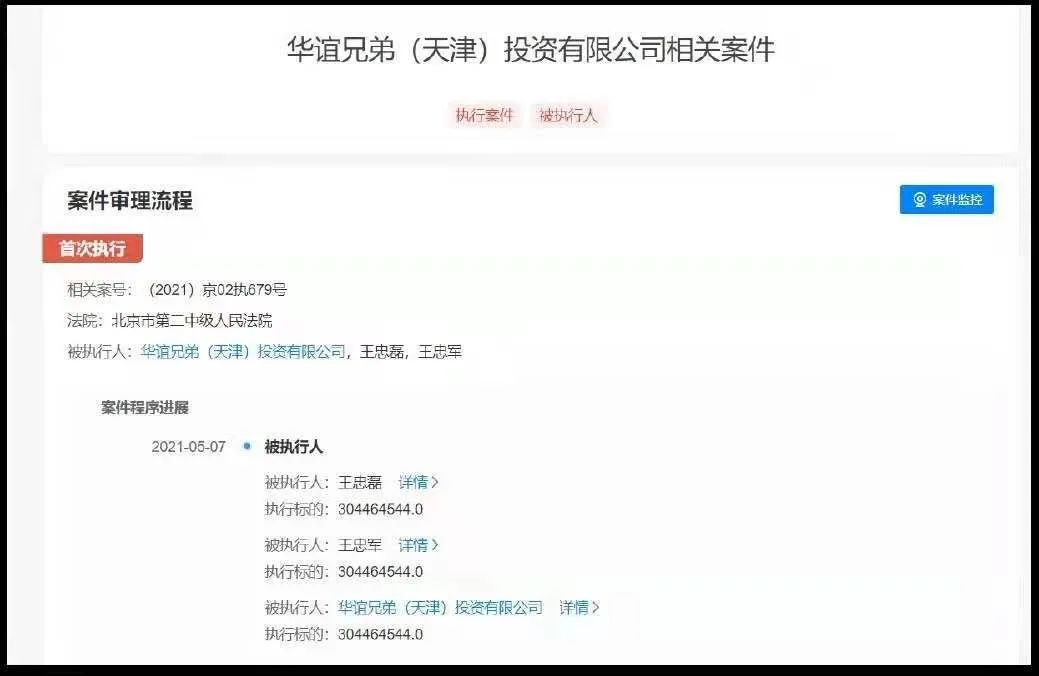 近日,華誼兄弟(天津)投資有限公司新增一條被執行人信息,執行標的高達3億元人民幣,被執行人包括華誼兄弟(天津)投資有限公司、王中磊、王中軍。