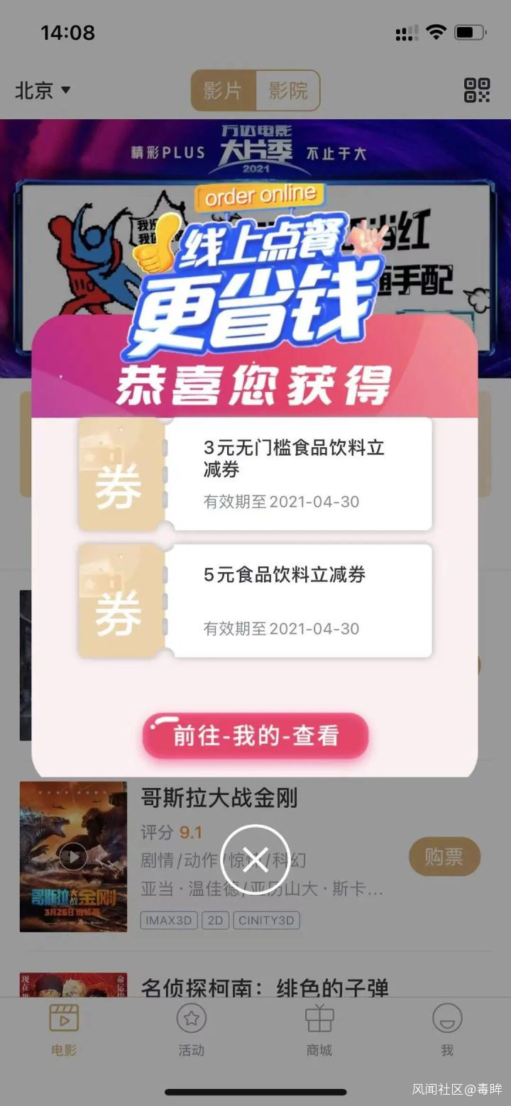 阿凡達重映,萬達電影APP低價票(圖源微博)在平均票價不斷攀升的情況下,低價成為影城拉攏會員最直截了當的方式,影院自營APP、購票小程序則是主要載體。但“便宜”只是吸引用户的第一步,為了提高會員羣體的用户黏性,影院利用賣品福利、會員成長體系、線下活動以及APP的內容運營等多方面努力,來刺激用户的APP使用頻次。