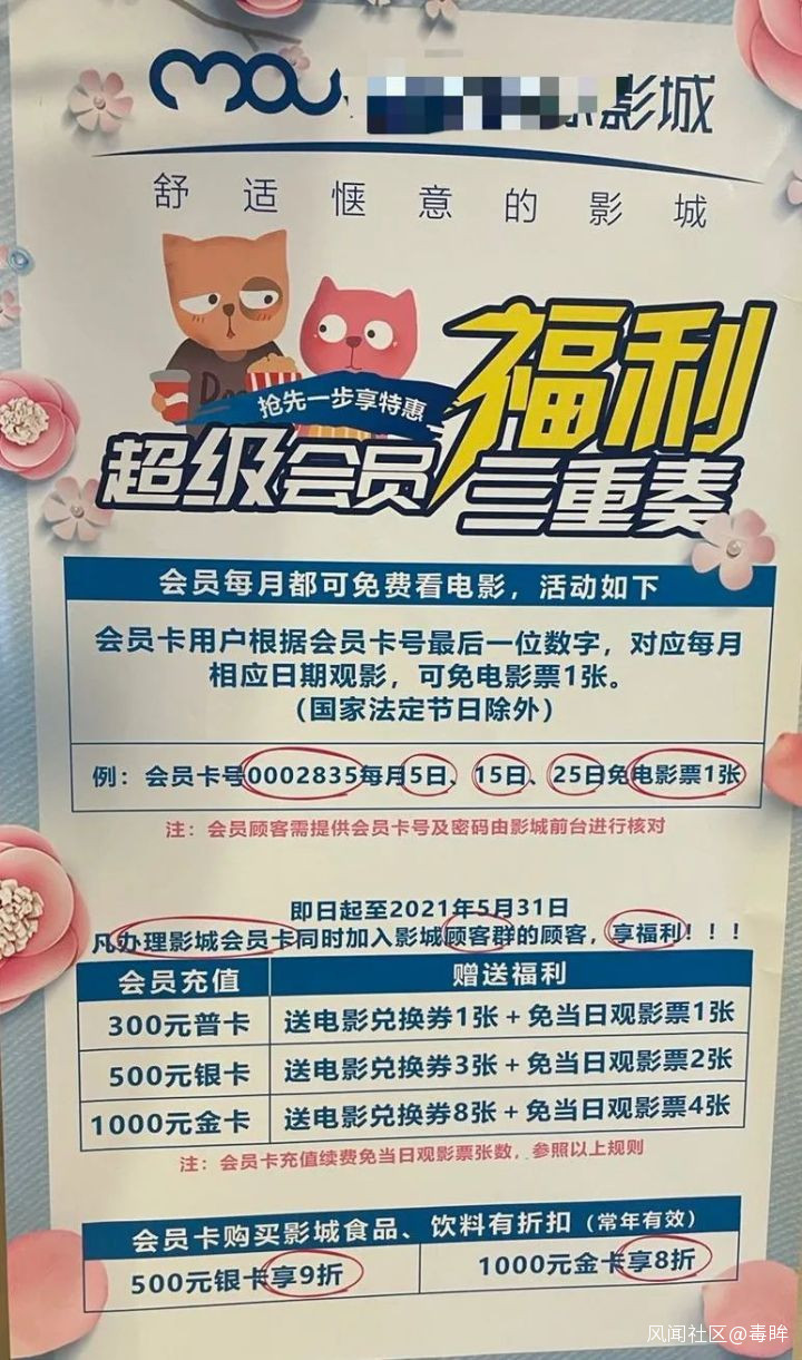 有多年從業經驗的影城經理對毒眸表示,像萬達、大地都有自己的運營團隊,有強大的技術支持,而小影城不具備這樣的條件:“即使我們一線從業者有需求,但是投入產出比不理想,想法也會被上級pass掉。”吸引會員的低價手段,大批小影城也不具備。低票價需要影城掏錢補貼,在疫情之後,消費者的充值意願降低,影院能從用户手裏提前拿到的資金有限,“這種價格補貼需要實打實的資金,小影城沒有資金實力做價格讓步。”北方某影城經理對毒眸説道。所以經常出現的情況是,某個影城在某一時間段內做了某個亮眼的營銷活動,吸引了一波消費者辦會員卡,但是這些活動由於資金、經歷等諸多原因,往往無法完美地持續下去。這樣一來,影院的會員生意常常是“一錘子買賣”,很難保持穩定。不僅如此,低價福利在很多下沉市場的從業者看來,本身就是悖論:如果在冷門的檔期做低價促銷,沒有賣座的影片上映,即使是15元一張的電影票,很多人考慮到要花費兩個小時去看一部冷門的甚至質量不高的電影,往往會選擇放棄“佔便宜”;而大的檔期、有熱門的影片上映的時候,本身就是影院難得的賺錢機會,在這個時候搞促銷、給會員低價票,會讓原本生存困難小影城損失去一部分“救命”的收益——在經歷幾次這樣的情況之後,用户發現會員的福利不過如此,往往很難續費、留存在小影城。“電影院本身就是靠天吃飯的。”有影城經理對毒眸表示,熱門的檔期,即使什麼都不做、只要影院開門就會有票房,而冷清的檔期,就算營銷天才也不會拉來大批的觀眾。
