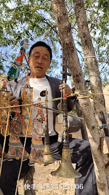 與此同時,快手也在利用自己的下沉優勢,將民間藝術繼續發揚光大。53歲的道情皮影戲藝人魏宗富,被掛在樹幹上的皮影和樂器圍繞着。他脖子後面的衣服裏插着一枚豬八戒皮影,手裏拉有些年頭的四弦,邊拉邊唱着道情唱段《豬八戒》。這樣一條不到一分鐘的視頻,在快手上有超過百萬的播放量。