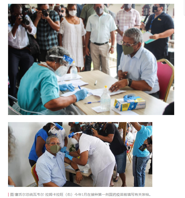 針對所接種疫苗的有效性問題,塞舌爾總統也表示,“國藥疫苗以及阿斯利康疫苗對該國防疫工作起到良好效用。若非疫苗有效,該國死亡和入院的人數勢必會大幅上升。”