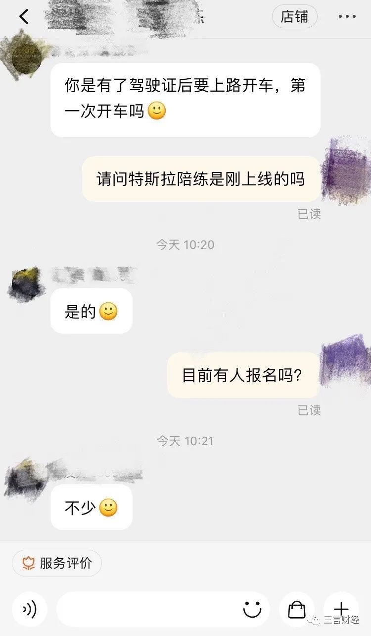三言財經進行了相關諮詢,該駕校稱特斯拉陪練課程是剛剛上線。