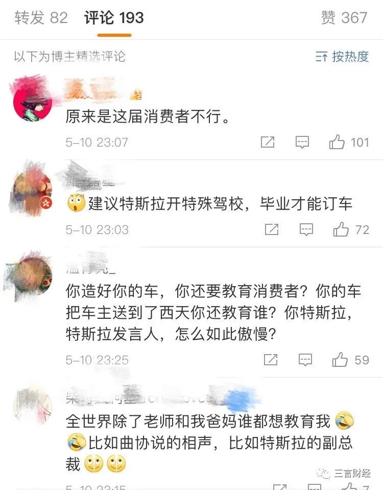 “原來是這屆消費者不行”、“建議特斯拉開特殊駕校”、“你造好你的車,你還要教育消費者?”之類的評論絡繹不絕。