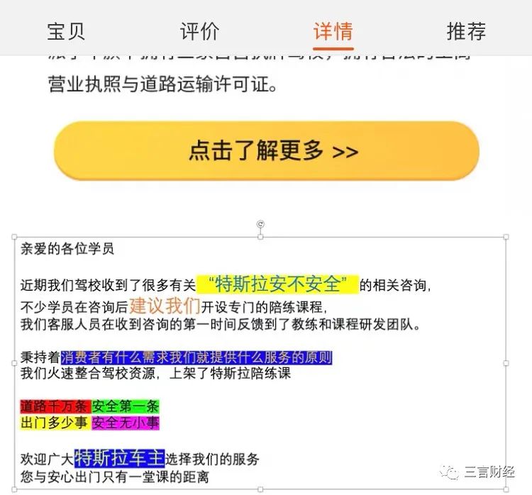 在課程的詳情介紹頁面,該駕校稱,近期收到很多有關“特斯拉不安全“的相關諮詢,不少學員在諮詢後建議其開設專門的陪練課程。
