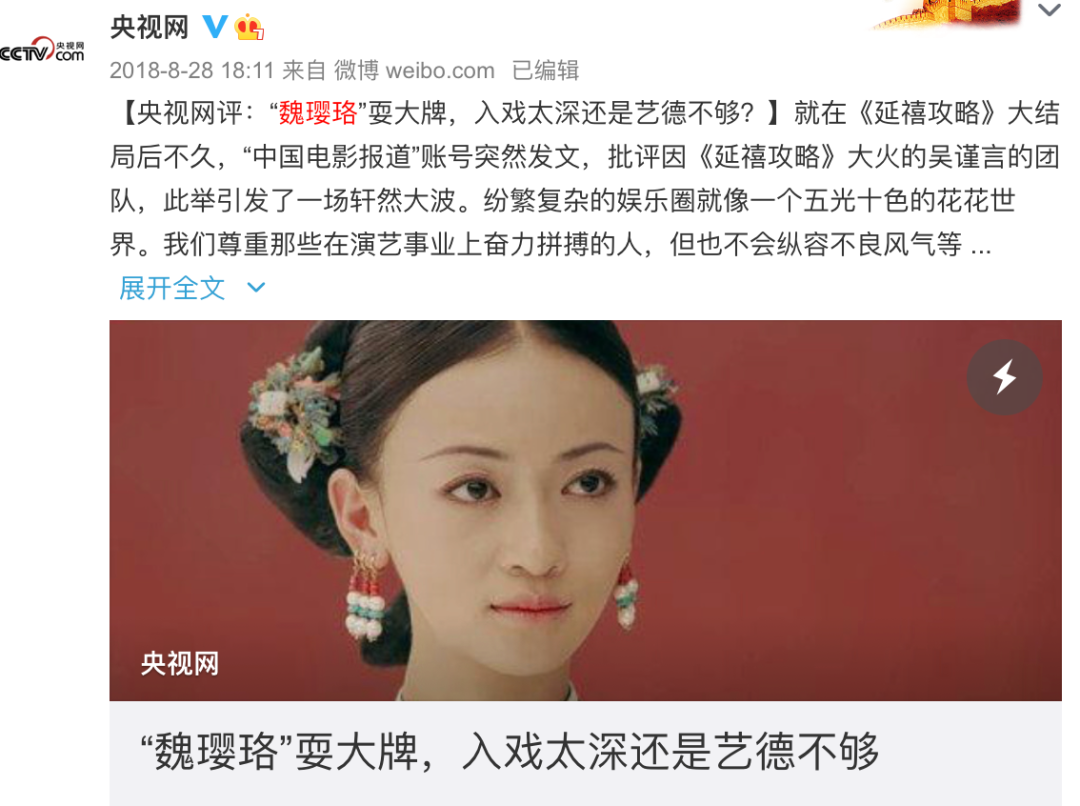 大哥“央視網”也出來護自家小妹,質問:入戲太深還是藝德不夠?