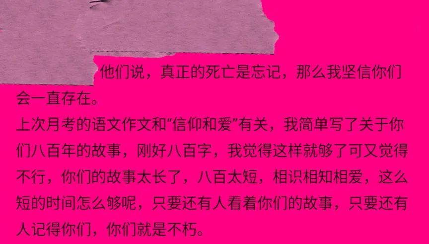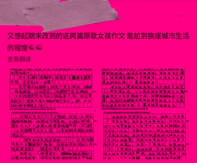 視角換到學生這一邊,彷彿有了別的一番景象,夾帶私貨是原耽女孩的常規操作,每篇一夾帶是一種類似以出門必上香拜神的宗教儀式,讓夾帶這件事超越了寫作文本身,讓作文成為一種真正的實用工具。