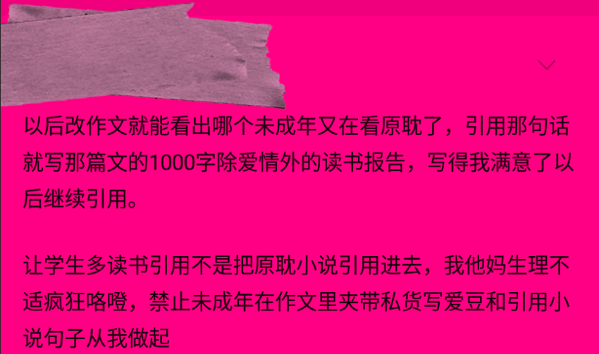 不止一個語文老師正在遭受學生們的原耽作文攻擊,據院辦觀察,只要是半命題作文,或者是材料作文,能拉上關係的,都會有同學(你也不知道是暗戳戳還是豁出去)拉上原耽作為題材,一次次地衝擊老師們的三觀。