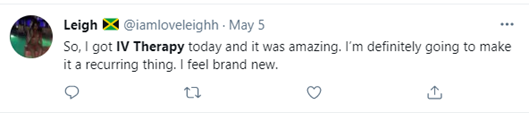 “今天我嘗試了靜脈療法,效果絕了。”——推特用户