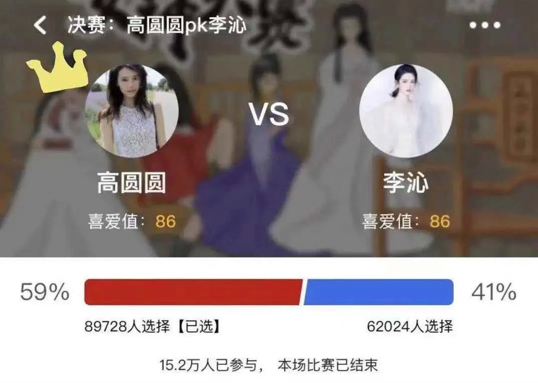 到了李沁與高圓圓的決賽,在李沁高歌猛進的態勢下,不得不將很多虎撲元老用户“呼喚”回來,從而形成強有力的凝聚力。決賽共吸引了15.2萬人參與,2017年及以前的JRs這次佔比總投票數超過57%, 高圓圓才最終以2.7萬票的領先優勢摘得冠軍。