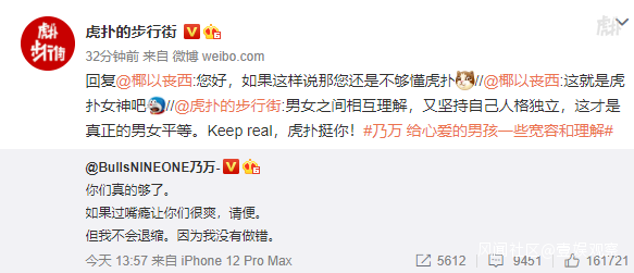 這場“網絡狂歡”背後,也引發了被網友稱為“微博女拳”和“虎撲直男”這兩個社區文化擁戴者的激烈碰撞。作為直男聚集地的虎撲,顯然“站”到了乃萬這邊,有支持乃萬價值觀的,有欣賞乃萬面對“網絡暴力”卻堅持維護自主話語權態度的。