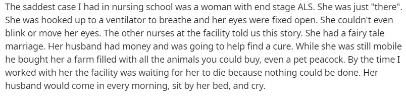 後來我還遇到過最悲慘的一個病例,是一位患有肌萎縮性側索硬化症的婦女,