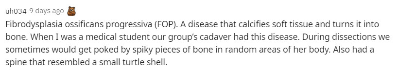 在我還是一名醫科學生的時候,分給我們學習小組的那具女性屍體就有這種病,