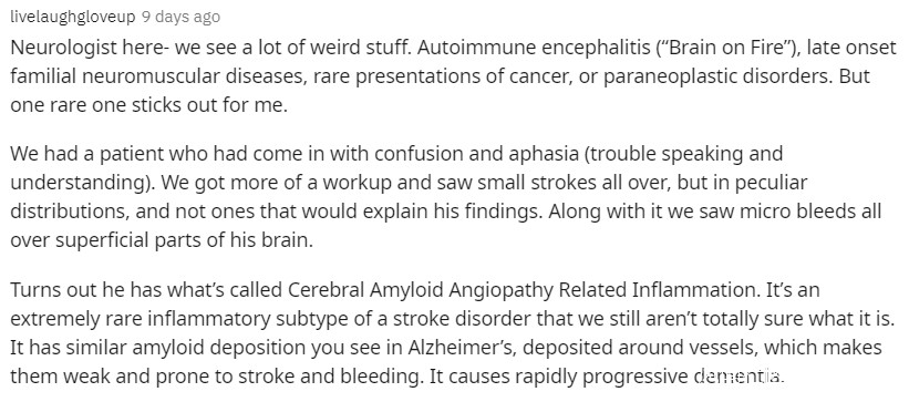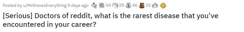 “想問下那些醫生,你們在從醫生涯中診斷過最罕見的疾病是什麼?”