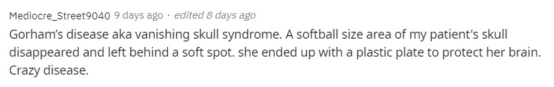 “我見過最罕有的是戈勒姆症,這病又被稱為顱骨消失綜合徵,