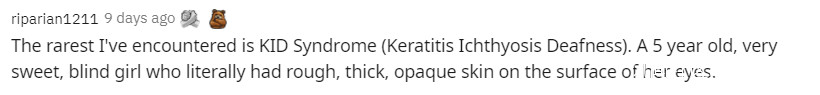 “我碰到過最罕見的是KID(角膜炎、魚鱗病及耳聾)綜合徵!