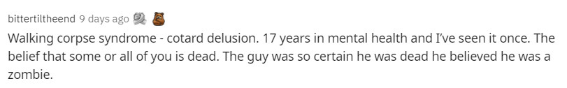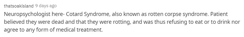 患者總以為自己已經死了,甚至正處於腐爛狀態,所以拒絕進食和喝水,更不會同意接受任何形式的治療…”