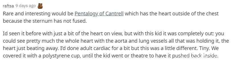 “坎特雷爾五聯症是種很罕見的病,患者的心臟會因為胸骨沒有融合而出現在胸腔外!