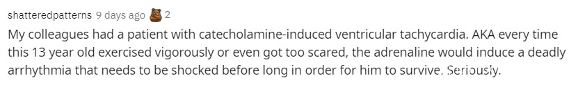 “我同事碰到過一個患有兒茶酚胺源性室性心動過速的病人,而且還是個13歲的孩子,