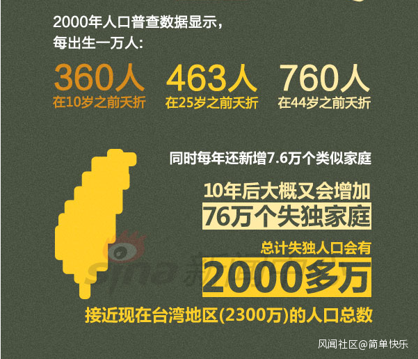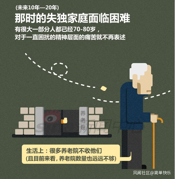 中國家庭小型化,我要説的一點是中國的失獨家庭,這是一個長期被忽略的羣體。根據社科院2010年的一項研究稱,中國目前已經最少有100多萬失去獨生子女的家庭。我國一共有2.18億獨生子女,其中1009萬人或將在25歲前離世,平均每年有7.6萬個失獨家庭增加,這意味着,不用太久之後的中國將有超千萬的失獨家庭,而如何保障這些失獨家庭的養老等社會保障問題,應該引起全社會的關注。
