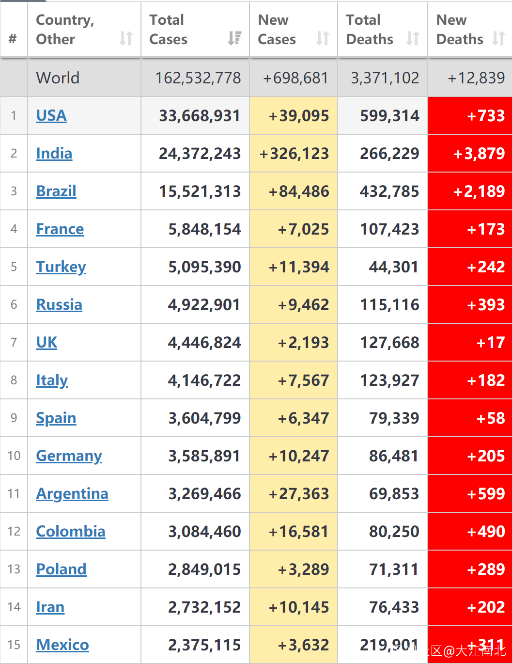 全球疫情第一大國美國新增確診3.91萬例,累計確診3367萬例;新增病亡733例,累計病亡59.9萬例,逼近60萬例大關。