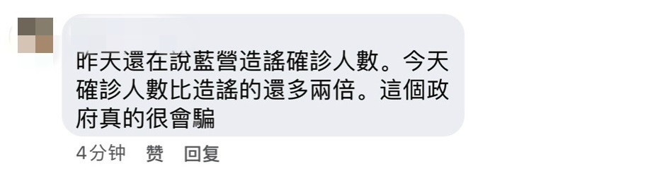 社交網絡上,對於最新的疫情形勢,有台灣網民表示,聽了就覺得頭暈和可怕。