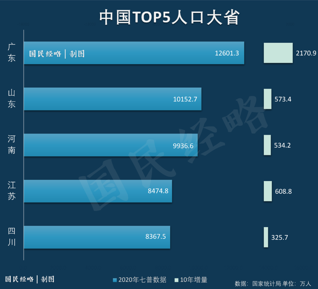 廣東(1.26億)、山東(1.01億)、河南(9936.6萬)、江蘇(8474.8萬)、四川(8367.5萬)。
