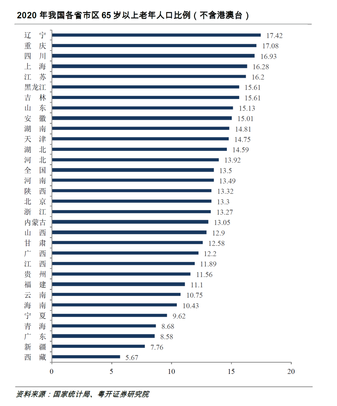 與之相比,老齡化率最高的遼寧已經高達17.42%,進入深度老齡化階段。