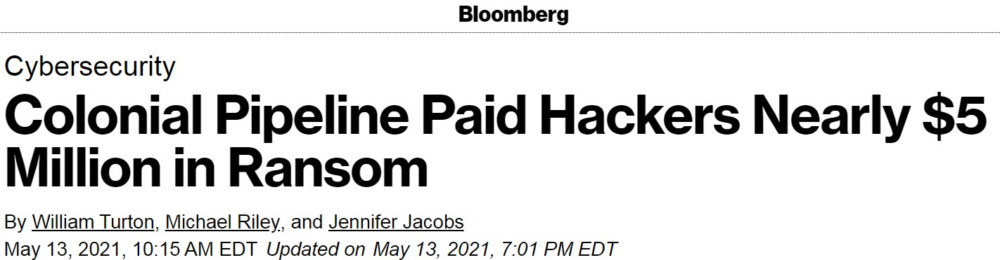 這就是美國!號稱“全天候安全(見下圖)”的**殖民地管道公司(“真探”覺得這個翻譯非常準確)**在支付了500萬美元的贖金後,美國的 “斷汽”狀況持續。