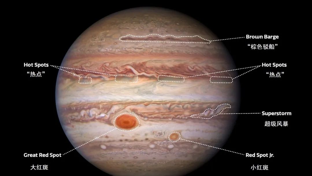 哈勃太空望遠鏡拍攝的木星可見光圖像揭示了木星大氣層的各種特徵。