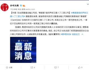 黑客組織DarkSide將其系統植入了“勒索病毒”強行加密,取走了近100GB的數據,威脅對方如果沒有在週五收到贖金,就把這些數據泄漏到互聯網上。