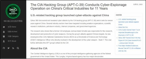 去年,360安全大腦捕獲了美國中央情報局CIA攻擊組織(APT-C-39)對我國進行的長達十一年的網絡攻擊滲透。